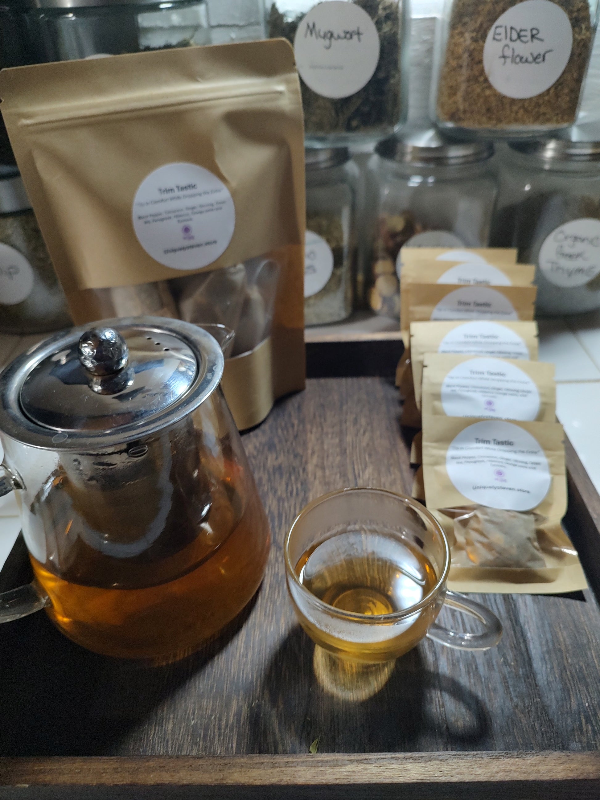 Trim Tastic is your daily ritual of release and renewal. This hibiscus-forward blend combines warming spices and adaptogenic herbs to support metabolism, digestion, and energetic clarity. Crafted for comfort and transformation, it invites you to sip with intention and drop what no longer serves.